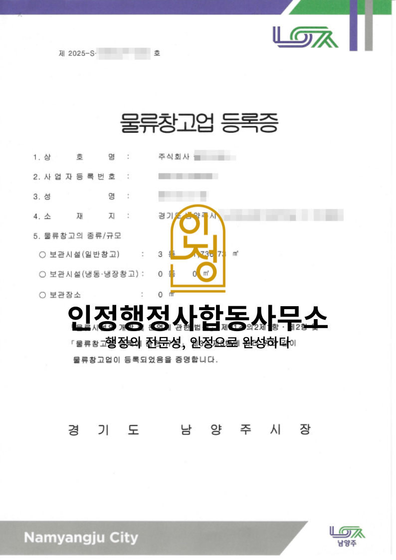 저희 인정행정사합동사무소는 고객사의 창고시설을 직접 검토한 후, 시설 기준 적합 여부 확인 → 행정기관 협의 → 등록 신청 → 보완 대응의 전 과정을 지원했습니다.