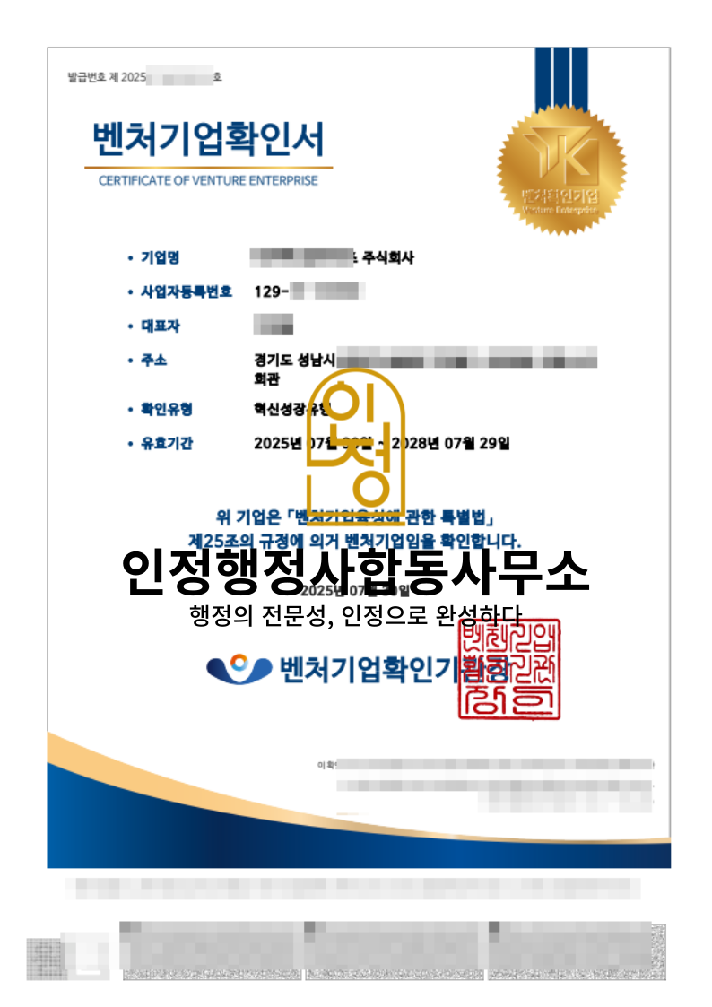 ???? 벤처기업확인서는 사업계획서·재무제표·특허 등 전문적인 검토가 필수입니다.