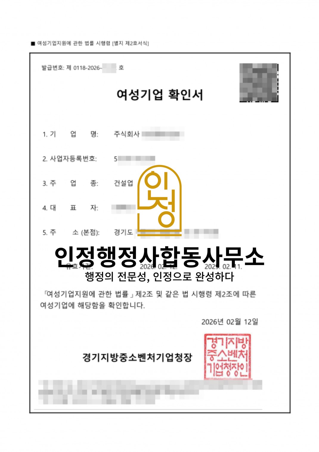 26년 02월_여성기업확인서 발급 대행 완료