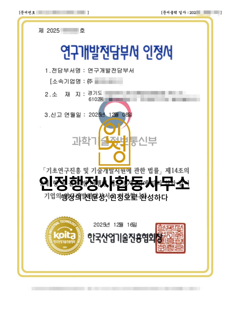 #연구개발전담부서 #연구전담부서설립 #KOITA #R&D기업 #세액공제 #정부지원사업 #기업인증 #인정행정사