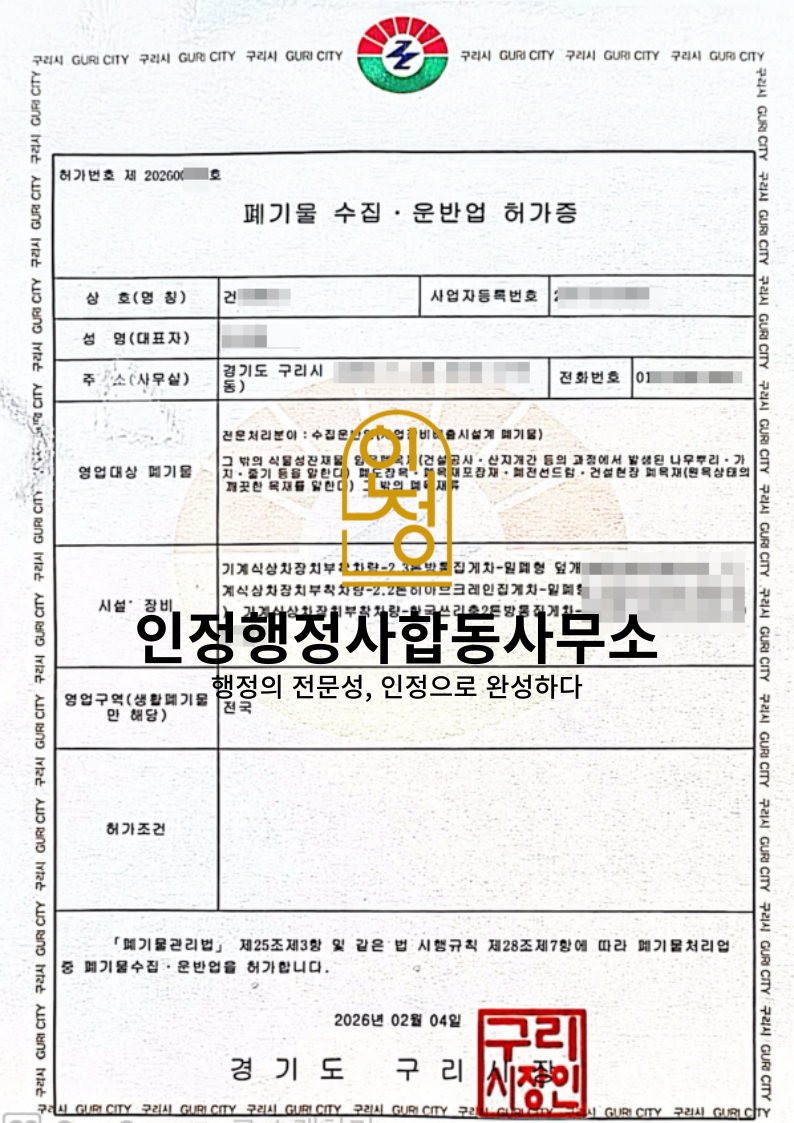 #폐기물수집운반업 #폐기물허가 #환경인허가 #폐기물사업 #차량요건 #기업인허가 #인정행정사