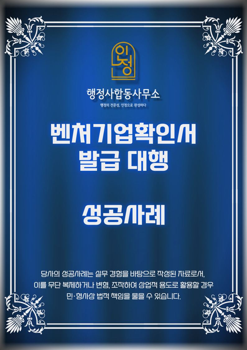 #벤처기업인증 #벤처기업확인 #제조업벤처 #기술평가보증형 #혁신성장유형 #R&D기업 #정책자금 #기술기업인증 #인정행정사