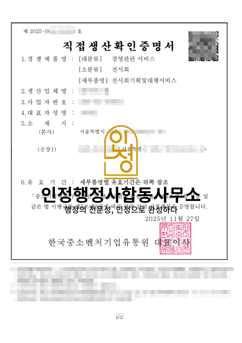 25년 11월_직접생산확인증명서 발급 완료(기타행사기획및대행서비스)