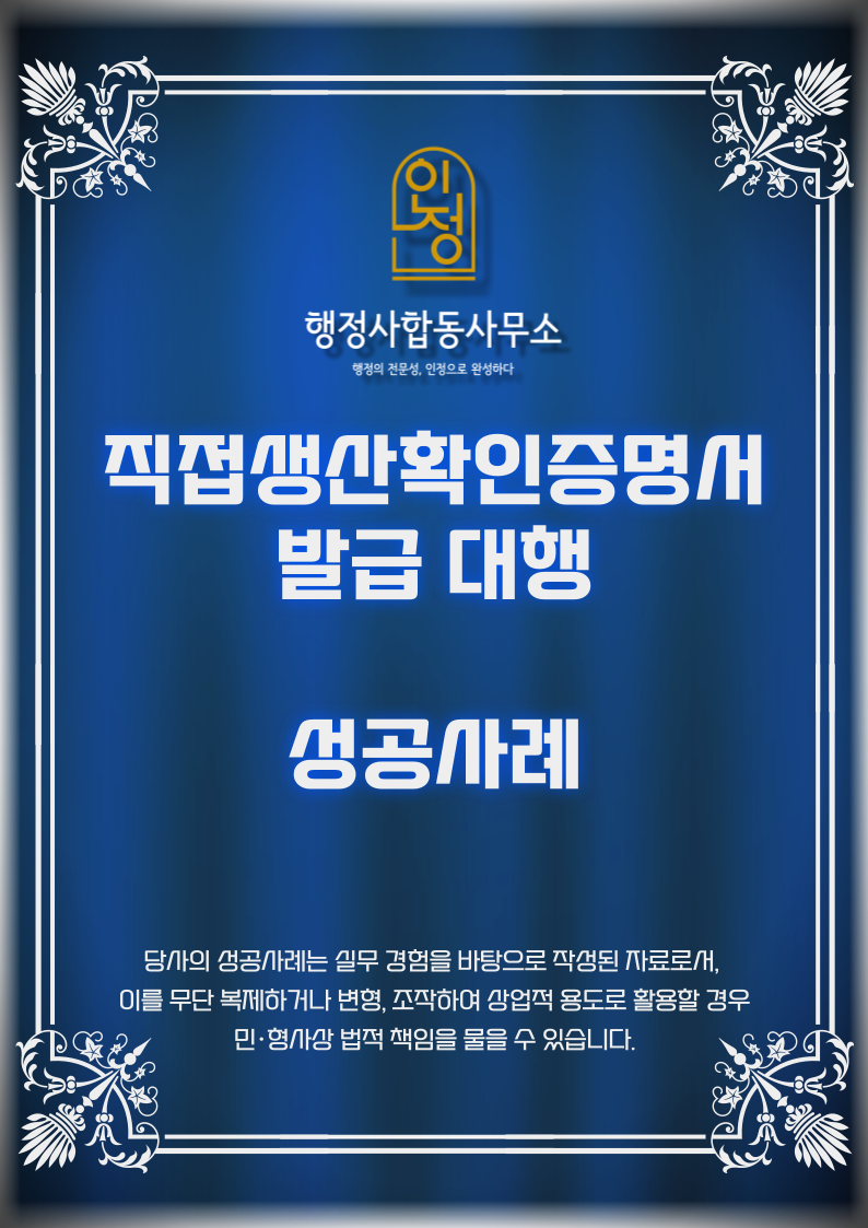 성공사례 : 직접생산확인증명서 발급 완료(기타행사기획 및 대행서비스)