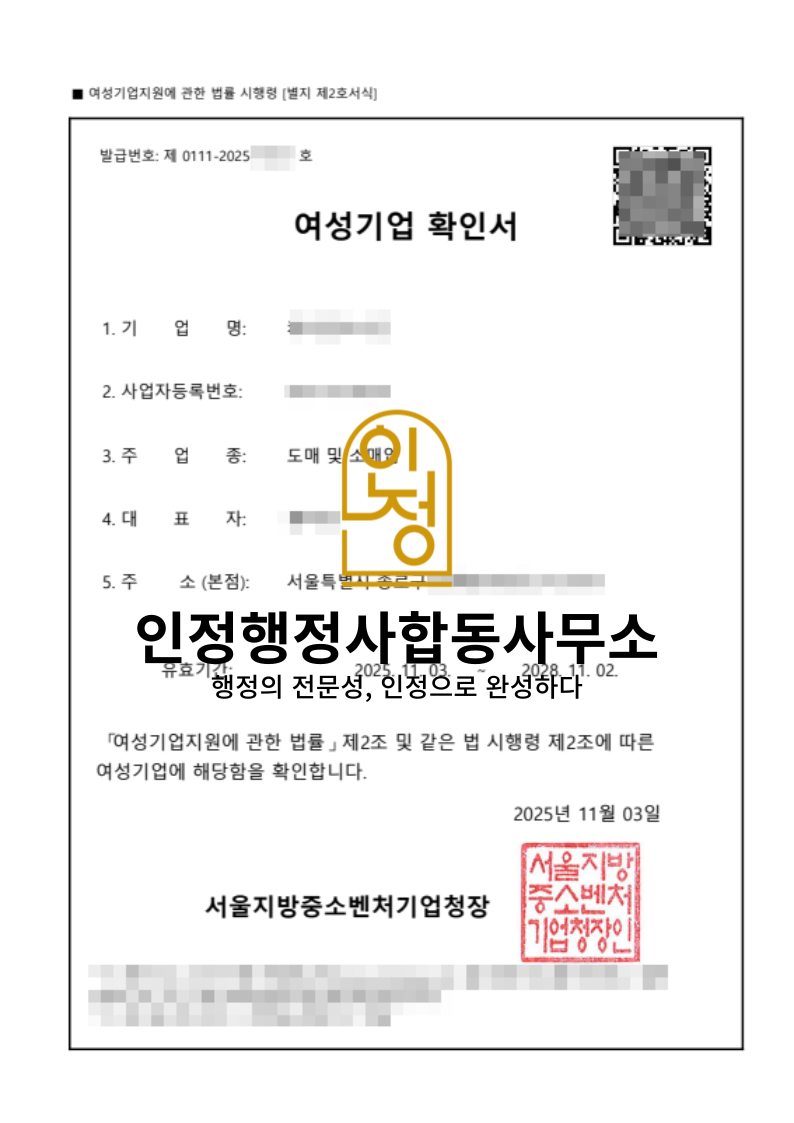여성기업확인서는 단순한 명칭이 아닌, 공공시장과 지원사업에서의 경쟁력을 높여주는 중요한 인증입니다.